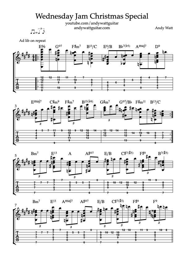 It’s that festive time of year so I thought some fancy chords by the Christmas tree would be appropriate! This is a solo piece that I put together recently and it occurred to me that it would be the perfect ‘chill-out’ music for about 5.30pm on Christmas day when everyone is stuffed/drunk/asleep. As a Christmas bonus I’ve put a rough TAB of it below.