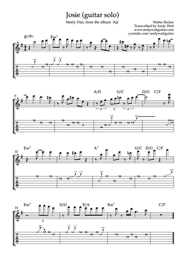 I’m also sharing the transcription I made of the rhythm guitar part and solo while I was learning it…. It’s not perfect, and the rhythm guitar part only has intro/verse/chorus so you’ll have to figure out the structure/repeats for yourself! If you do get some use from it and would like so show your support then my tip jar can be found at https://www.buymeacoffee.com/andywattguitar.